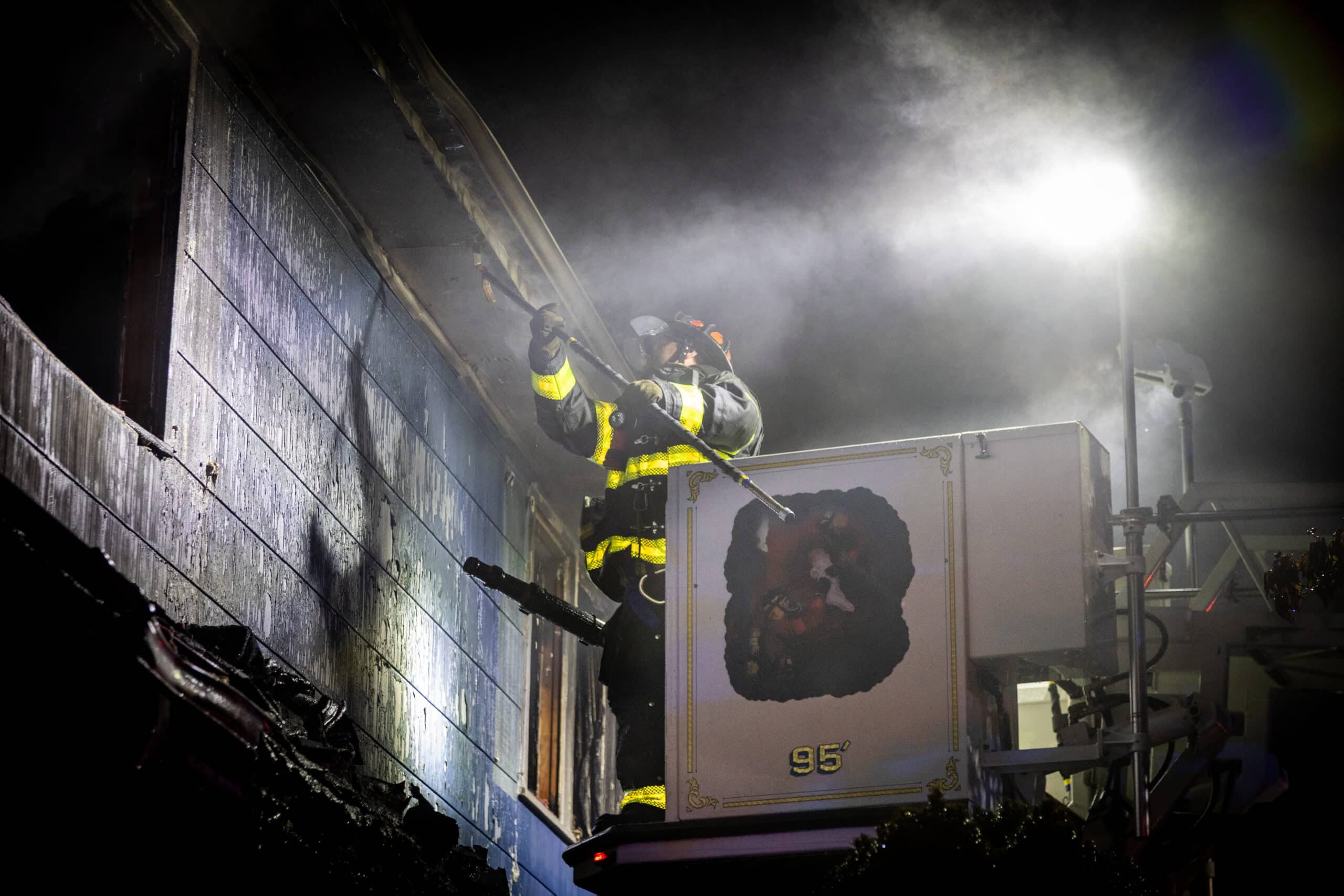 As the firefighters began taking over the flames, they were cautiously re-transitioned to an interior attack.